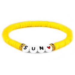 Letter bracelet have different words and designs for choice, customized words or designs are available.Polymer Clay Beads Bracelet Beach Bohemia Sweet 6mm Soft Clay Bracelet Elastic Lady Hand String Rainbow Bracelet, used for Gift, Party, Wedding, Anniversary, Engagement, Jewelry wholesaler, Distributor, Jewelry maker, Fashion Costume company, Souvenir maker, gift maker.